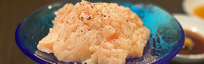 天空に一番近い牛の部位、通称『天肉』旨味たっぷりの赤身を山椒塩で。