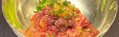 トモバラのボンインシュートリブを清山匠のタレで漬け込んだ一品。